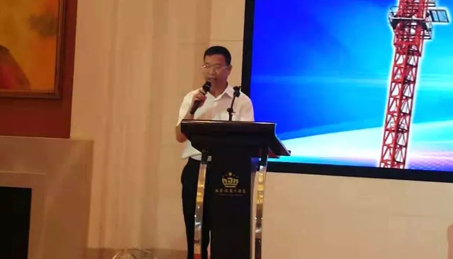 公司技術(shù)副總經(jīng)理靳義新在大會(huì)上對(duì)塔機(jī)、升降機(jī)產(chǎn)品進(jìn)行詳細(xì)講解。